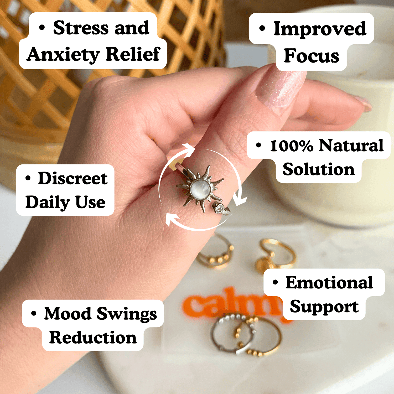 Calmy anti-stress rings offer immediate relief, helping reduce stress, anxiety, and habits like nail-biting.